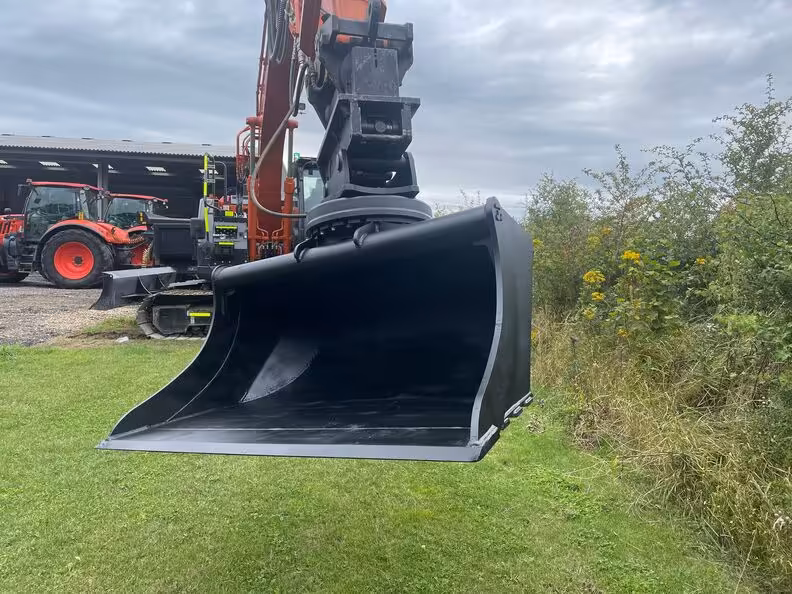 يُوفر الدلو المائل قدرة عالية على المناورة، حيث يتيح للمشغل إمالته بزاويا مختلفة دون تحريك الحفارة نفسها. هذه الميزة تجعله مثالياً لأعمال التسوية والتشكيل وإنهاء العمل في التضاريس غير المستوية.