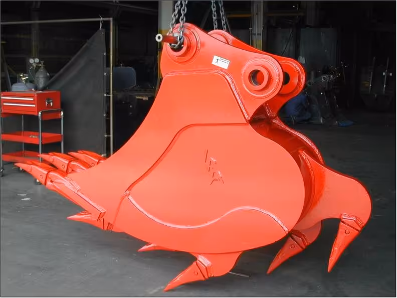 عند العمل ضمن بيئة بتضاريس قاسية، يُعد دلو الصخور الخيار الأنسب. يتم تصنيعه من فولاذ معزز ويتميز بجدران جانبية أكثر سماكة وأسنان قوية تتحمل الصدمات العالية والتآكل الشديد. يُستخدم هذا النوع بشكل شائع في أعمال المقالع والتعدين والهدم، حيث يواجه المشغلون الصخور الكبيرة والمواد القاسية والأرضيات المضغوطة.