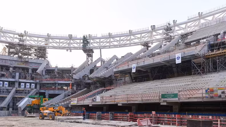 حفر الملاعب: كل ملعب يتطلب نقل ما بين 1–2 مليون متر مكعب من التربة.