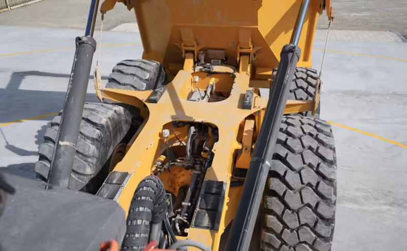 3. Hydraulic system and articulation: Check for leaks or excessive play in the articulation joints and hydraulic lines. These areas are critical and costly to repair.