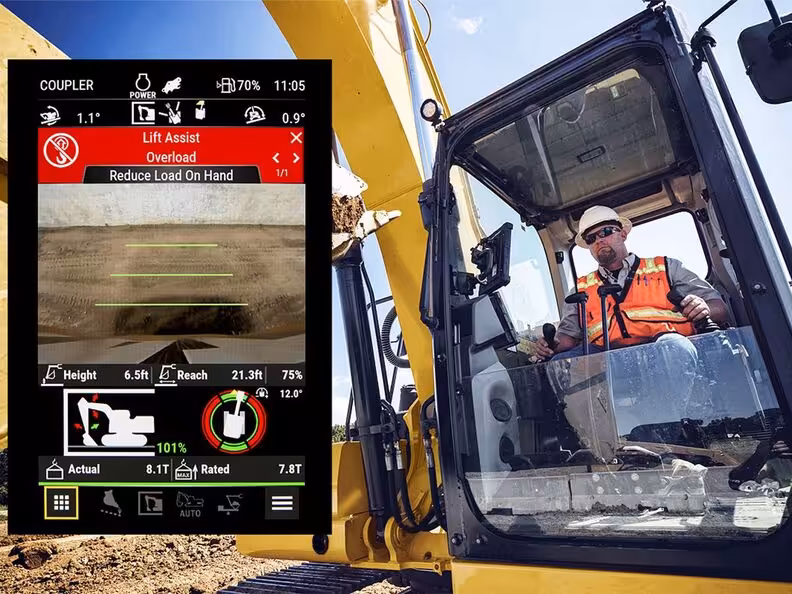 Caterpillar Lift Assist: Built into newer Cat excavators to calculate real-time lift limits.