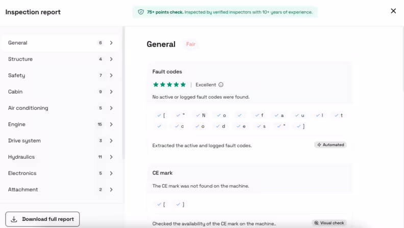 These reports go far beyond a casual walk-around check. They combine visual, manual, and automated inspections with advanced diagnostic tools, ensuring buyers see a clear, unbiased snapshot of the machine’s true condition.