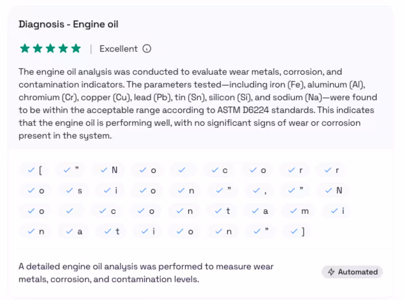 These reports combine visual, manual, and automated inspections, backed by diagnostic data and oil analysis, to give a reliable picture of a machine’s health.