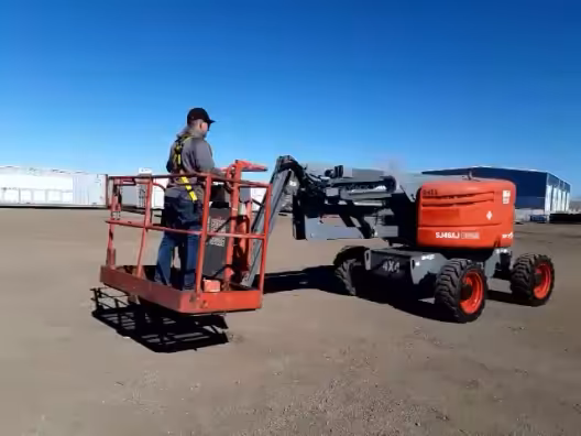 The Skyjack SJ46 AJ delivers real reach with precise control—16.10 m working height, 7.54 m horizontal outreach, and a 230 kg payload—packed in a tight, zero-tail-swing frame. Durable, maneuverable, and built to keep you moving.
