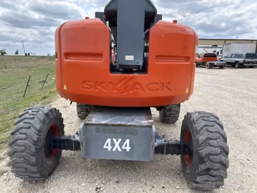 The Skyjack SJ63 AJ brings serious reach—21.2 m (69′7″) working height and 12.2 m (40′) horizontal reach—all packed into a zero-tail-swing body just 2.44 m (8′) wide. With 227 kg (500 lb) capacity, 4WD drivetrain, and full-height drive, this beast maneuvers tight jobsites without fuss and stays up when others stall.