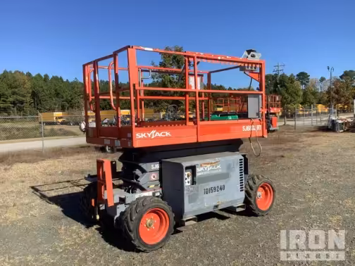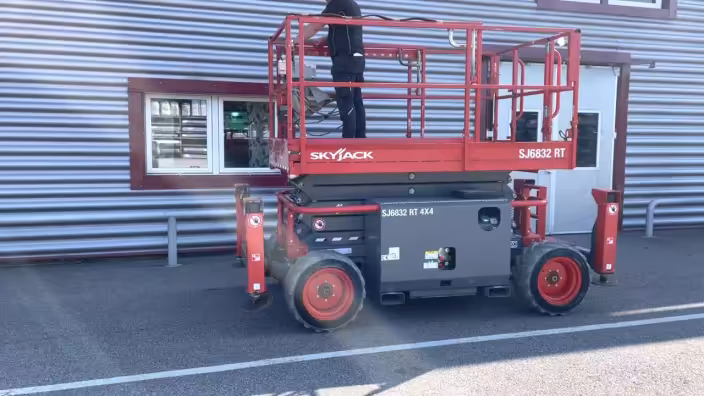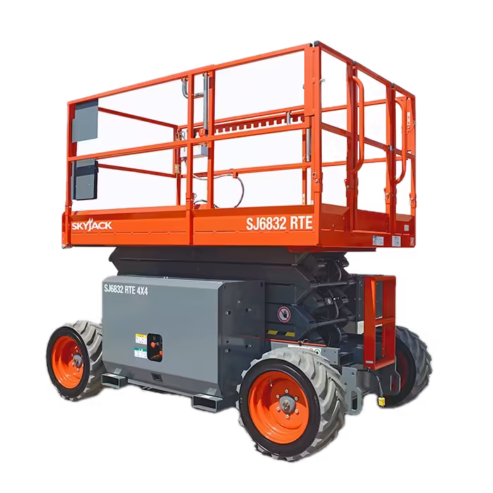 The Skyjack SJ6832 RT (2007–2025) is a rugged diesel scissor lift engineered for chunky terrain and zero downtime. It offers a working height of 11.75 m, shrinks to a usable width of 1.76 m, and hauls 454 kg capacity with stability. It's built tough—drive at full height, climb steep angles, withstand dust and mud, and keeps you working.